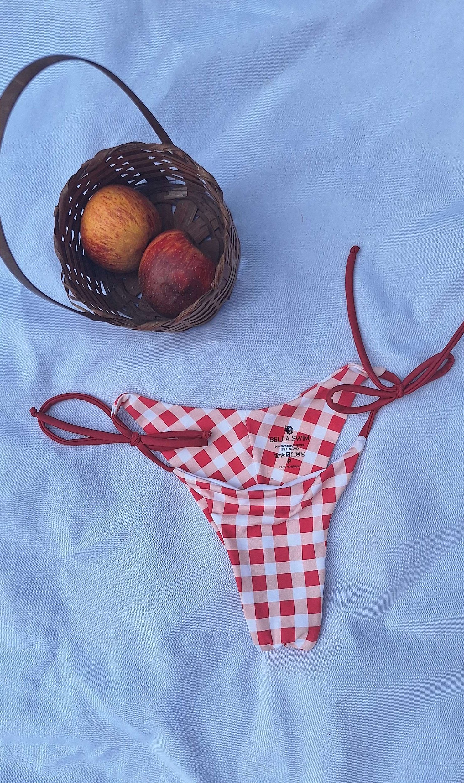 Calcinha com modelagem de amarração lateral, elástico embutido